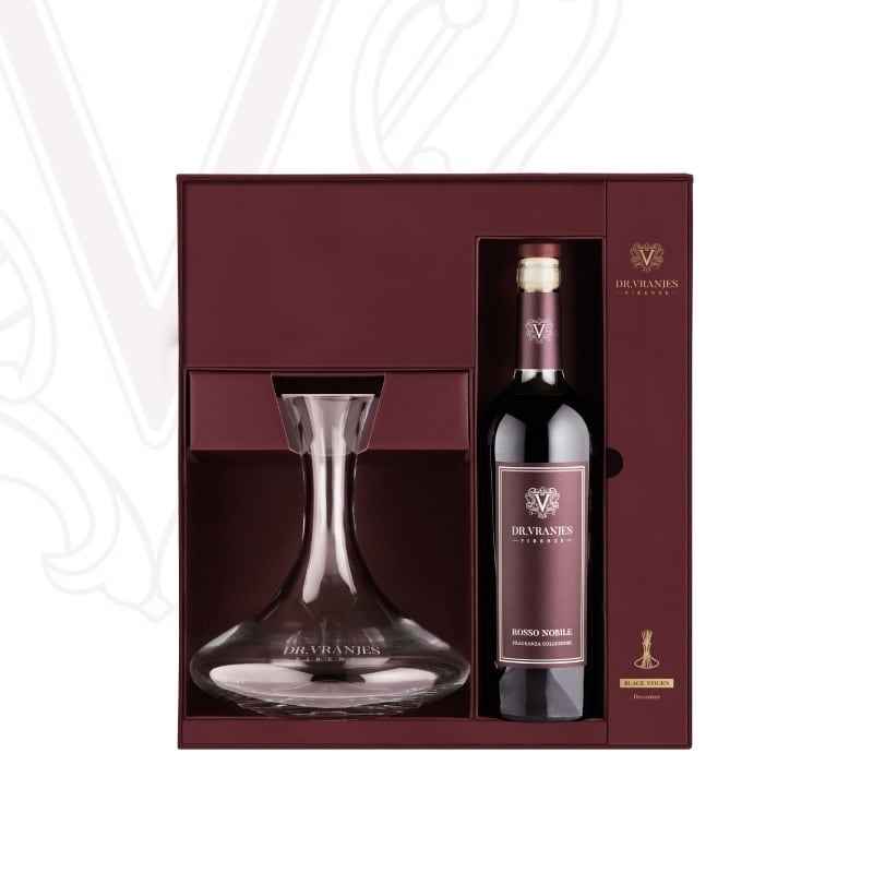 トスカーナのエッセンスを究極に表現した、世界で最もユニークなフレグランスのひとつロッソ ノービレ。このアイコニックフレグランスをワインボトルに詰め、手吹きのデキャンタ添えて。 ワインを愛する方へのギフトに、ご自身の大切な空間の演出に。洗練のインテリアを完成させるセットボックスです。