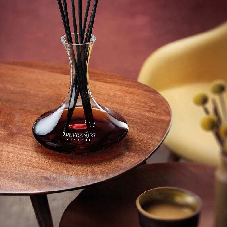 DR. VRANJES のディフューザーは、付属のスティックによって香りが周囲に広がる仕組みです。スティックの長さや本数は、ボトルの大きさに対して、香りがバランスよく十分に拡散するよう計算されていますので、本数を減らしたり、短くしてしまうことはお勧めできません。